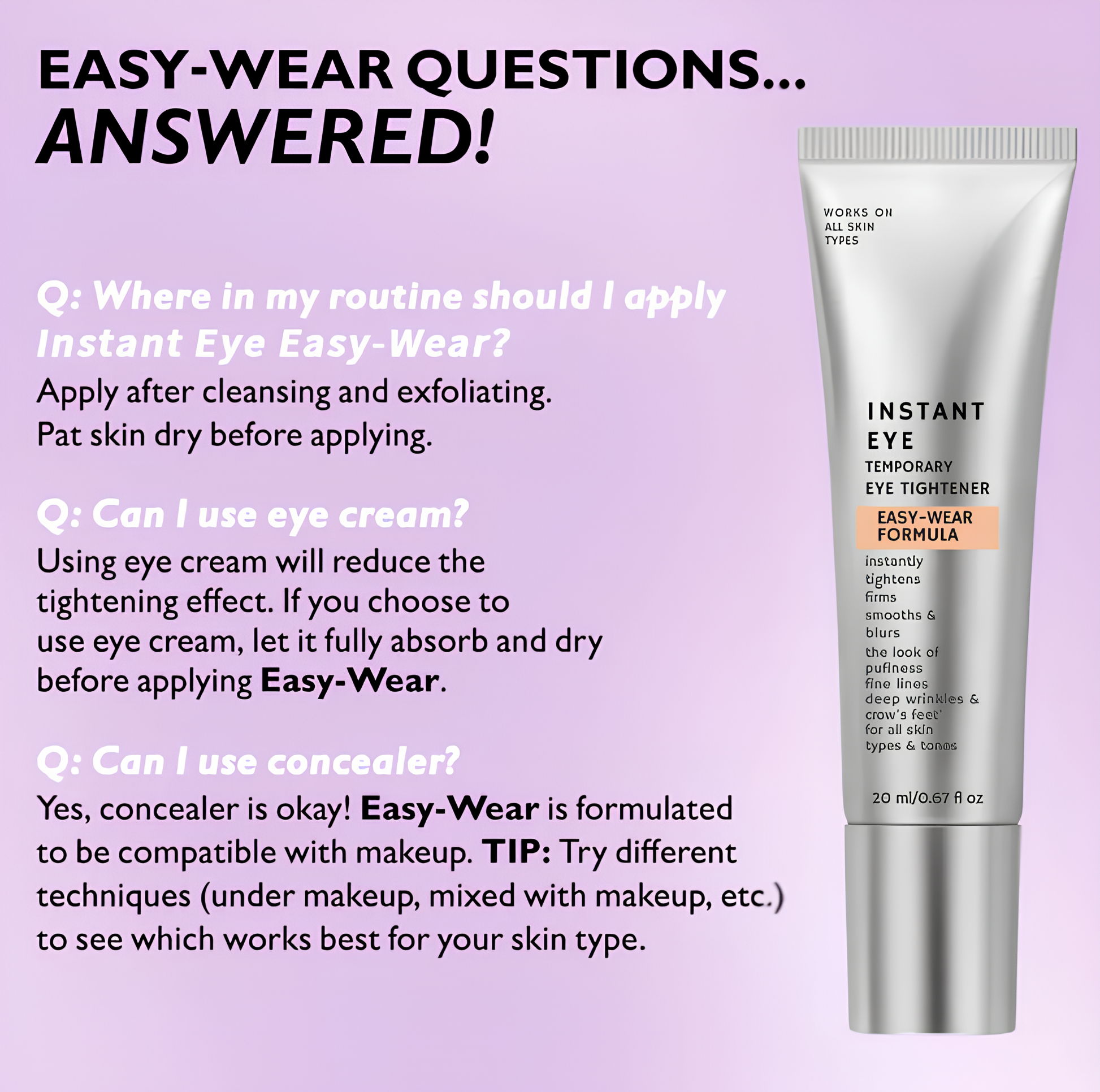 Transform your look in moments with a revolutionary eye treatment that instantly tightens and smooths, banishing fatigue and fine lines for a vibrant, youthful appearance that lasts all day.